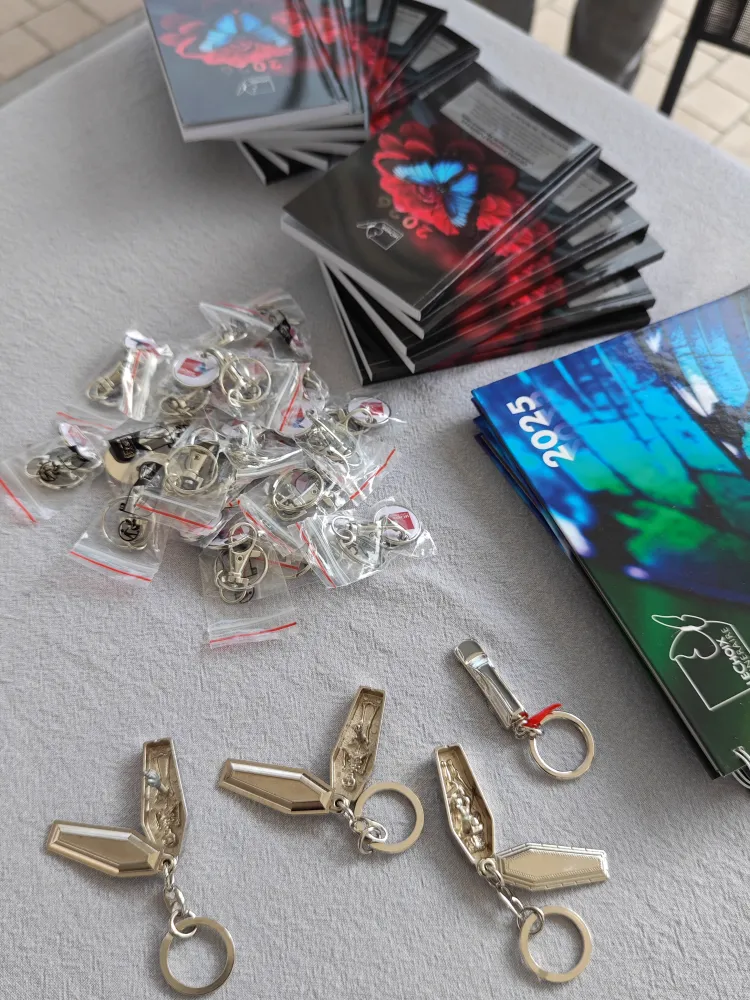 Pour l’occasion, nous avions préparé un stand chaleureux et accessible, accompagné de quelques goodies… dont nos fameux porte-clés en forme de cercueil qui ont rencontré un franc succès (oui, ils ont beaucoup fait sourire !). Une manière originale d’aborder un sujet parfois difficile, avec légèreté et bienveillance.