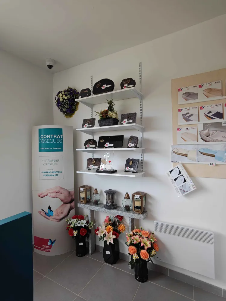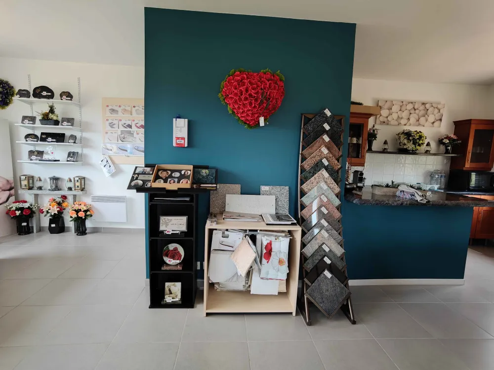 - La marbrerie avec les monuments funéraires et les plaques personnalisées